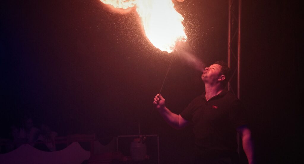 Doch neben aufwendig geübten Akrobatik-Shows, Tanz-Vorführungen mit ausgedachter Choreografie, Zaubershows etc. kommt es auch vor, dass Kinder ankommen und sagen: „Hey, ich kann einen Rückwärtssalto“ und schon steht ein Kind auf der umfunktionierten Zauberkiste und zeigt einen Salto in der Vorstellung.