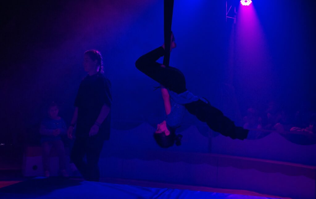 Ein ganz besonderes Highlight beim Zirkus ist seit ein paar Jahren das Turnen am Vertikaltuch und seit 2025 die Luftakrobatik am Netz. Eine ehemalige Praktikantin vom Falkenflitzer bringt seit ein paar Jahren ihr eigenes Vertikaltuch mit und die Kinder können eine Show am Tuch einstudieren, was für Herzklopfen und Staunen in der Zirkusvorstellung sorgte. Es ist beeindruckend, wie sie jeden Tag ihrer Herbstferien damit verbrachte, eine Show mit den Kindern auf die Beine zu stellen und inzwischen ist sie verlässlich jedes Jahr wieder mit dabei. Seit 2025 mit einer neuen Luftakrobatik-Nummer, dem Turnen im Luftakrobatiknetz.